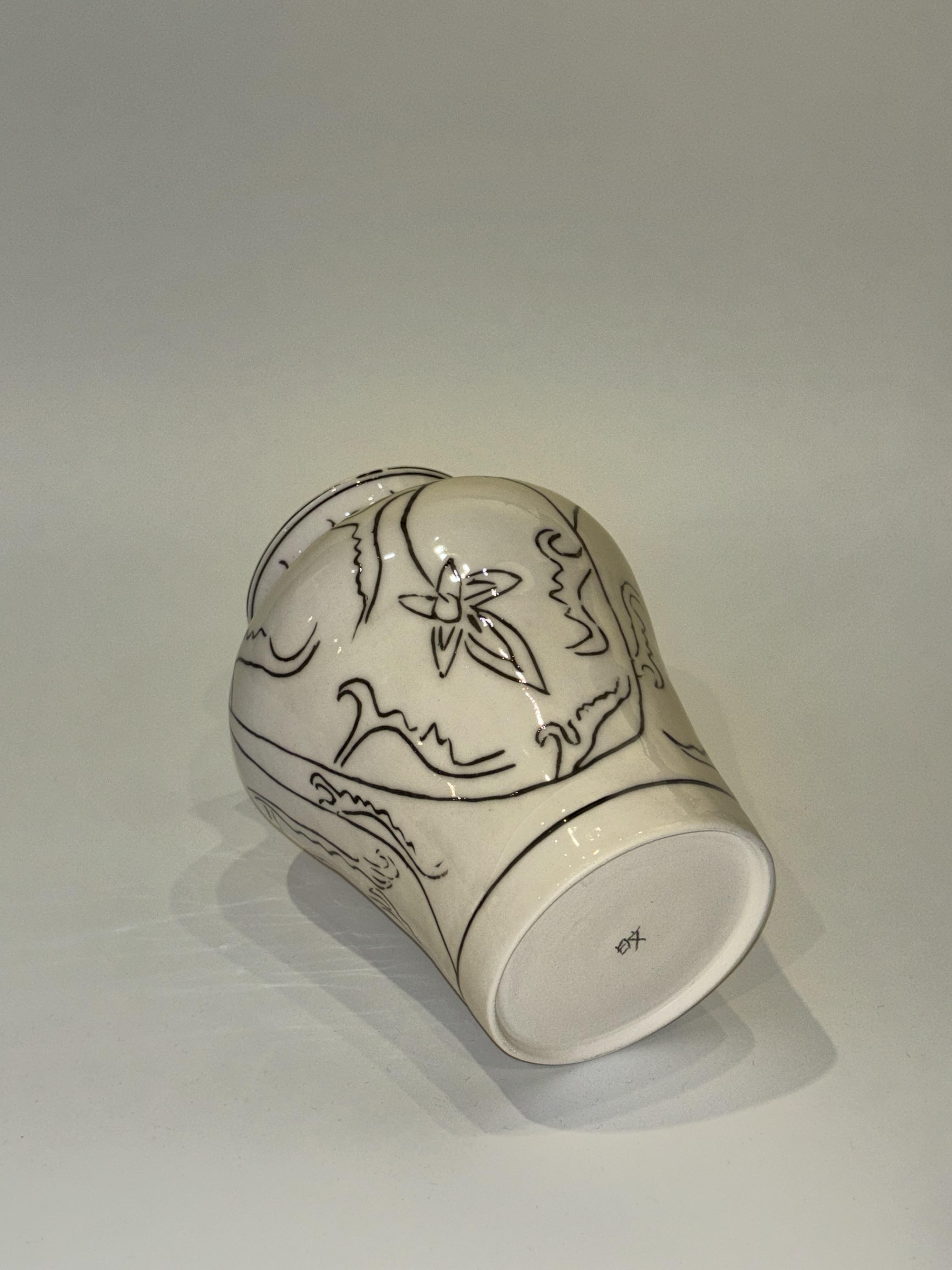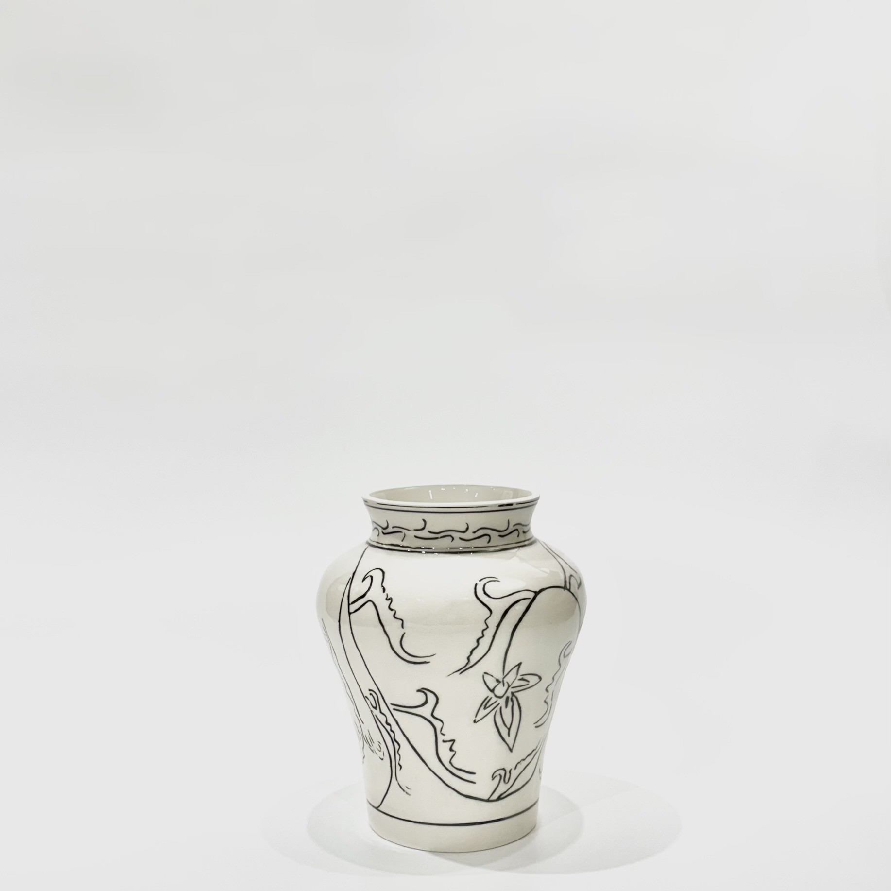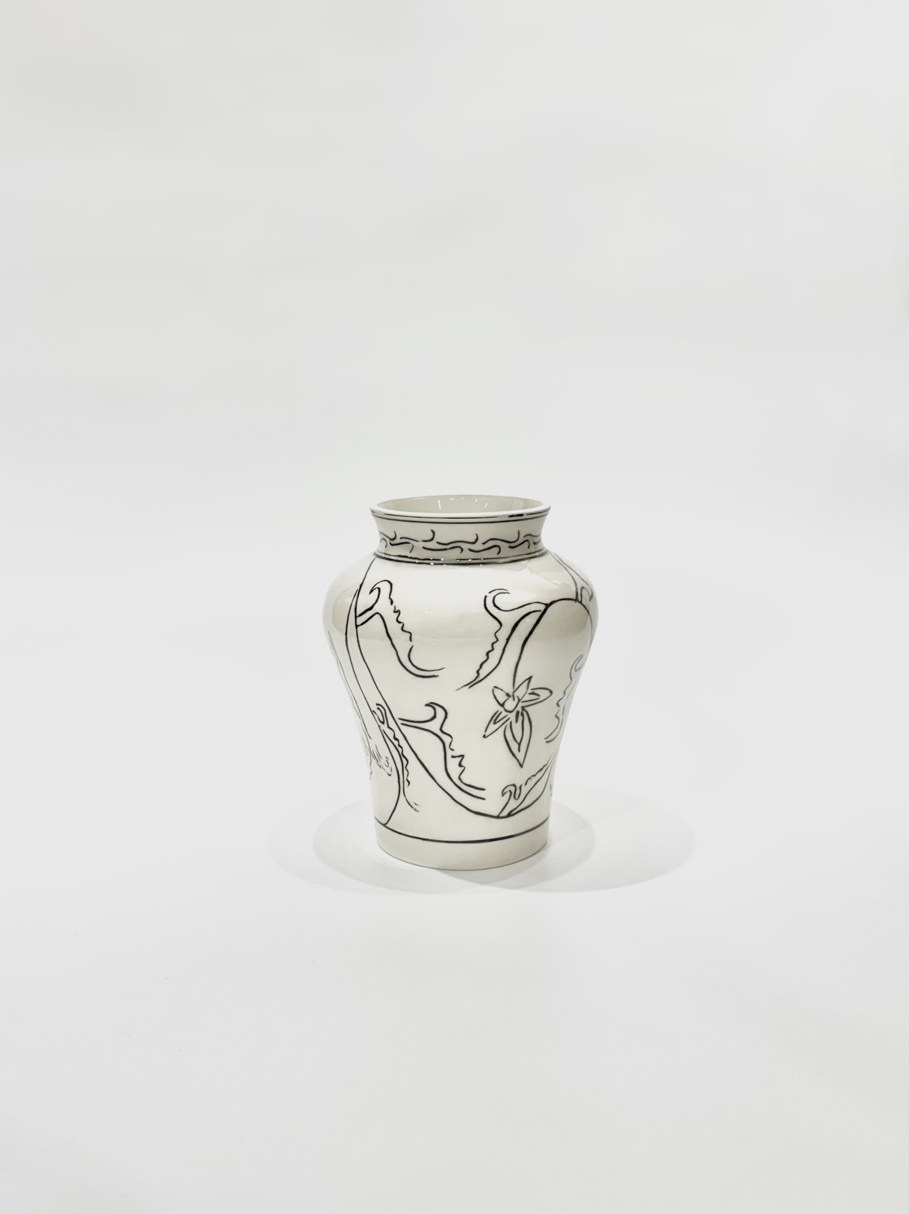 : 허리가 잘록하고 위아래로 퍼지는 곡선미가 특징인 병입니다.
