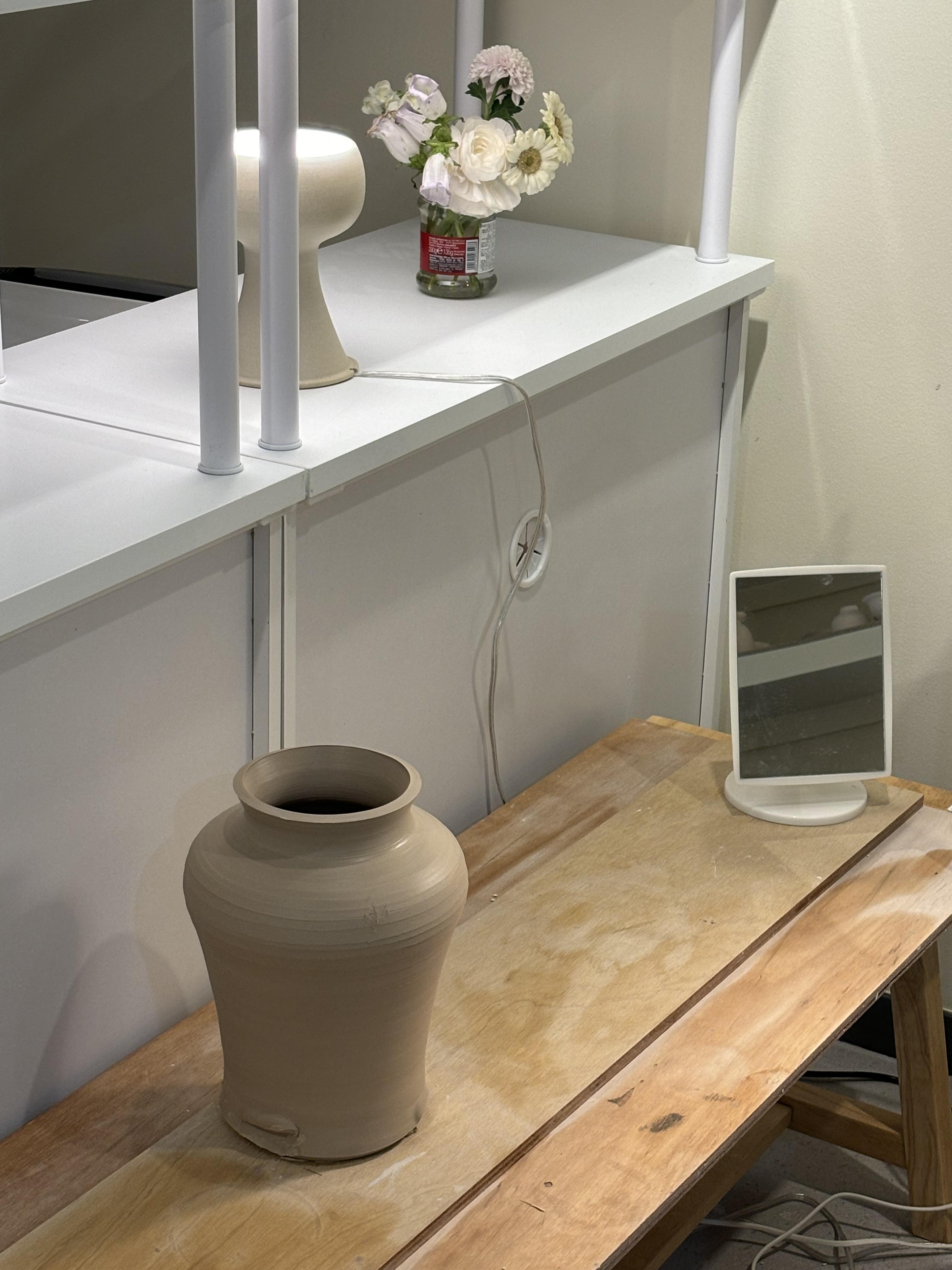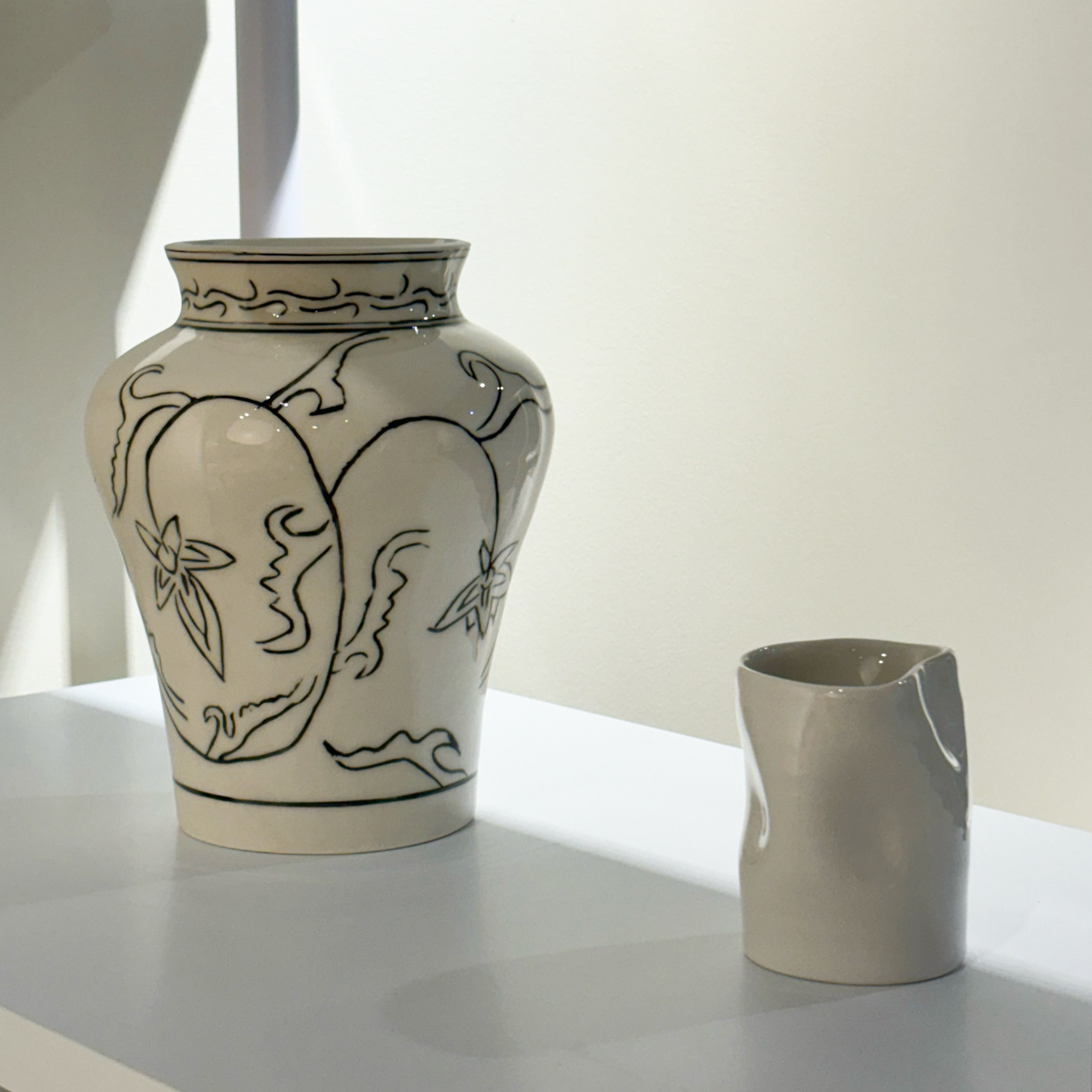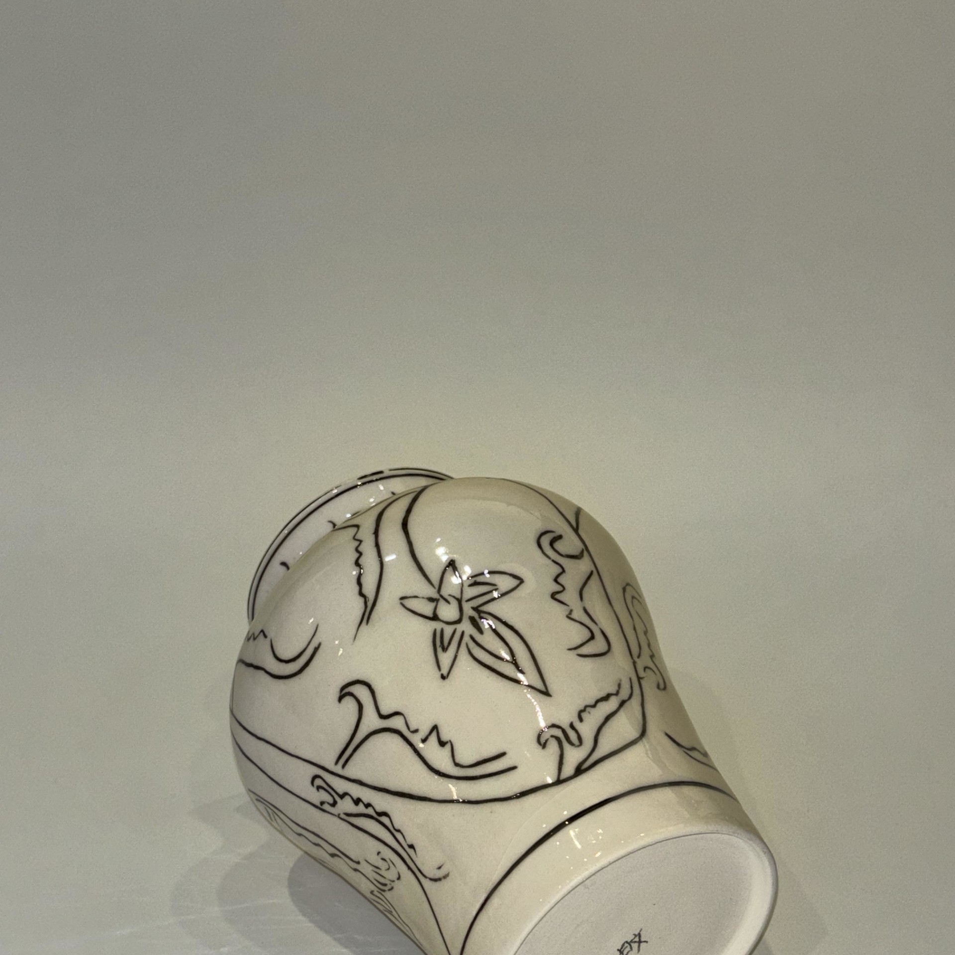 : 허리가 잘록하고 위아래로 퍼지는 곡선미가 특징인 병입니다.