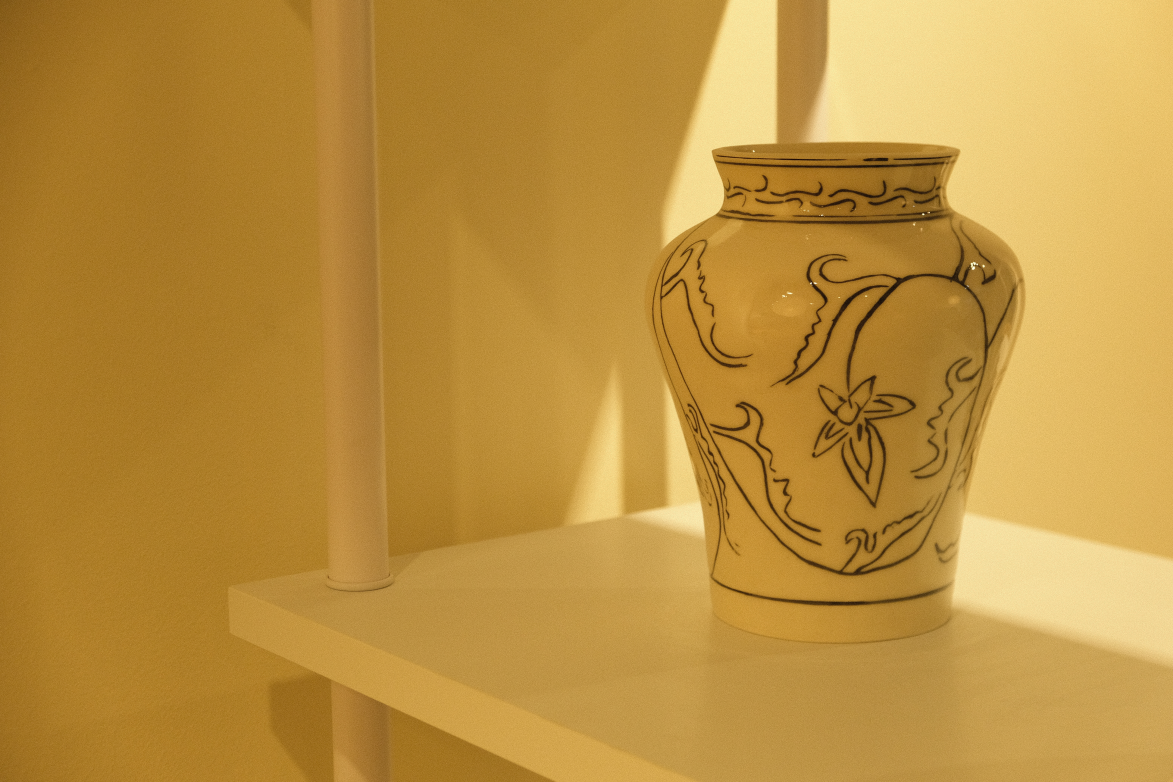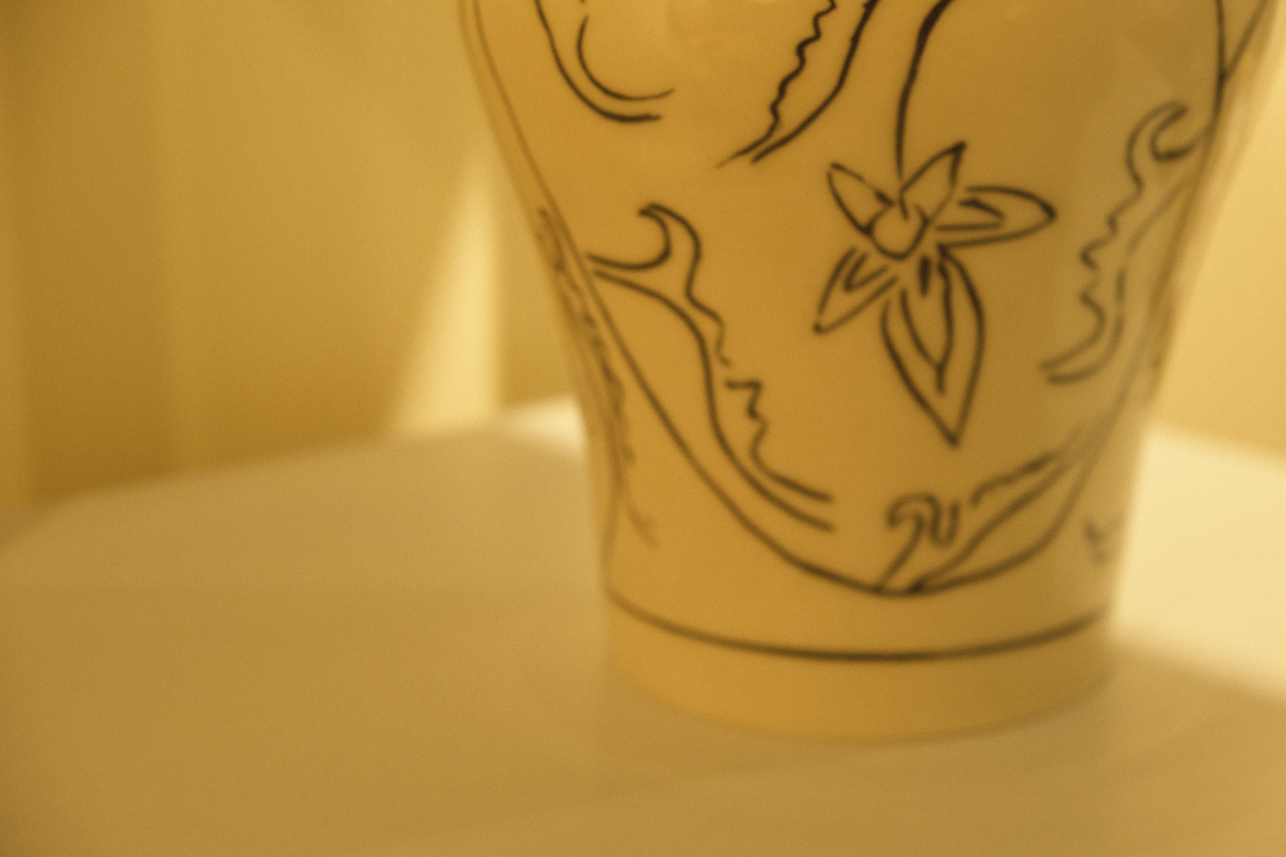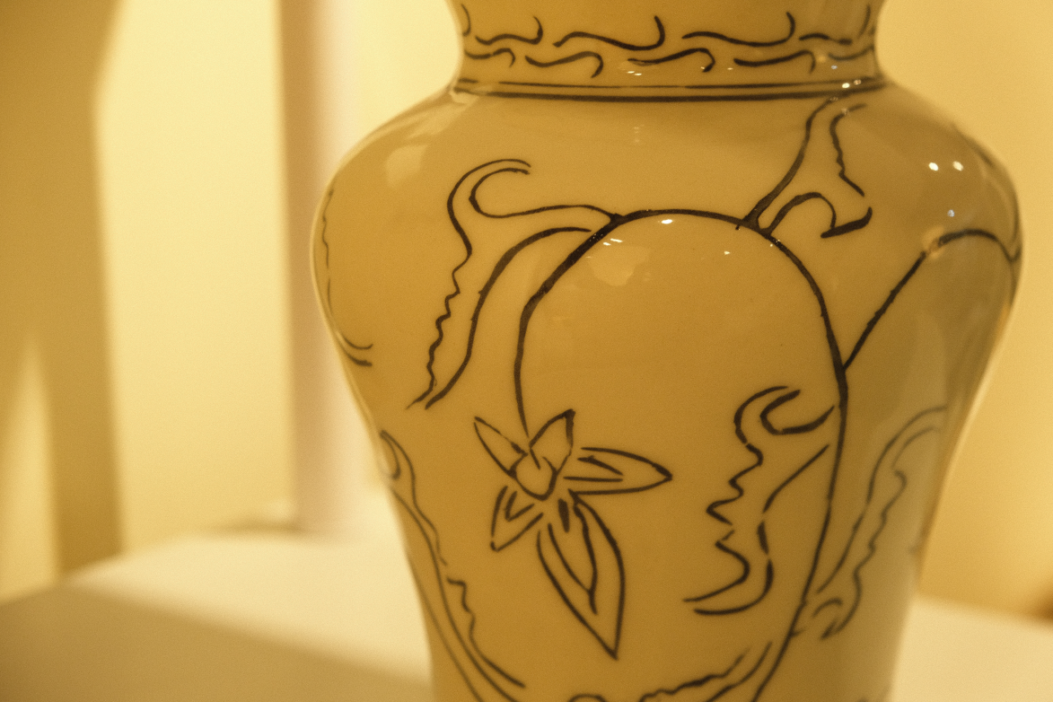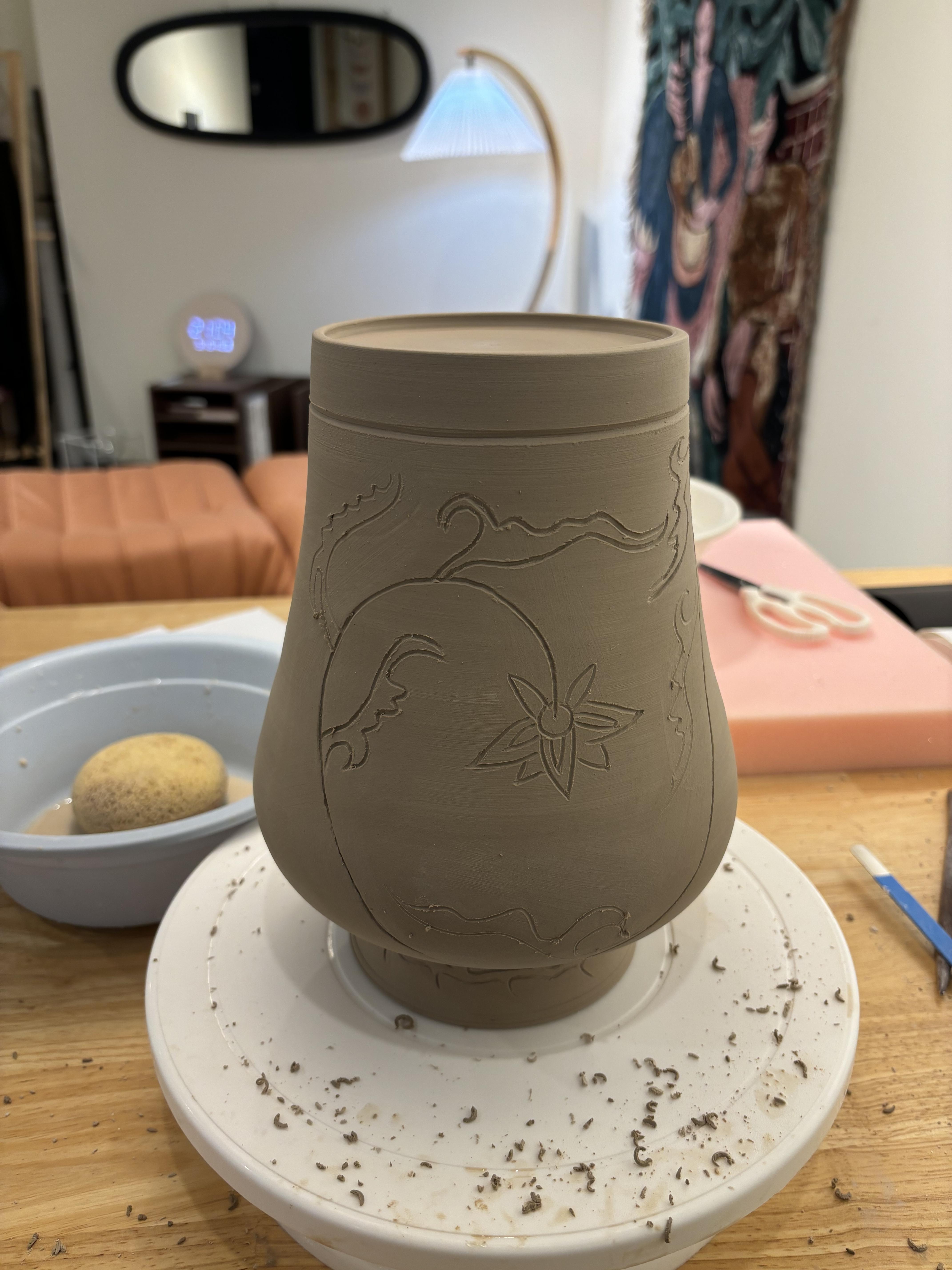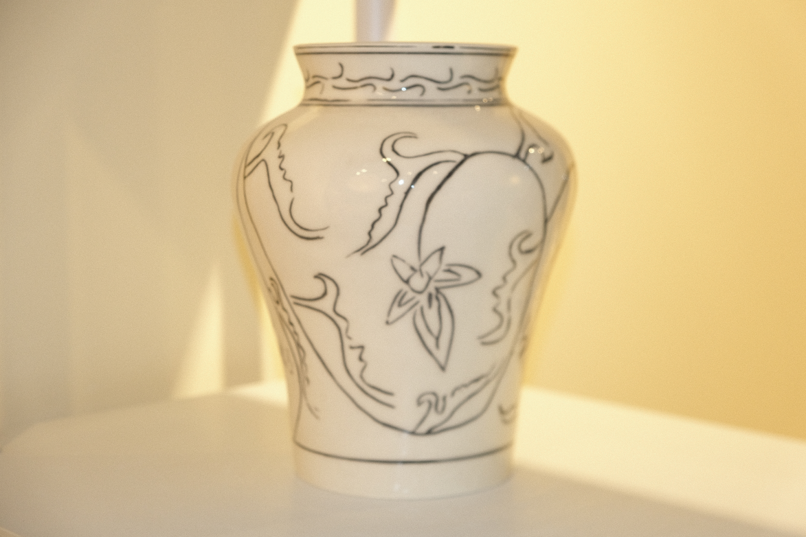 연꽃(연화)과 당초문이 어우러진 전통적인 문양에 현대적인 모던한 감각을 더 한 화병입니다.